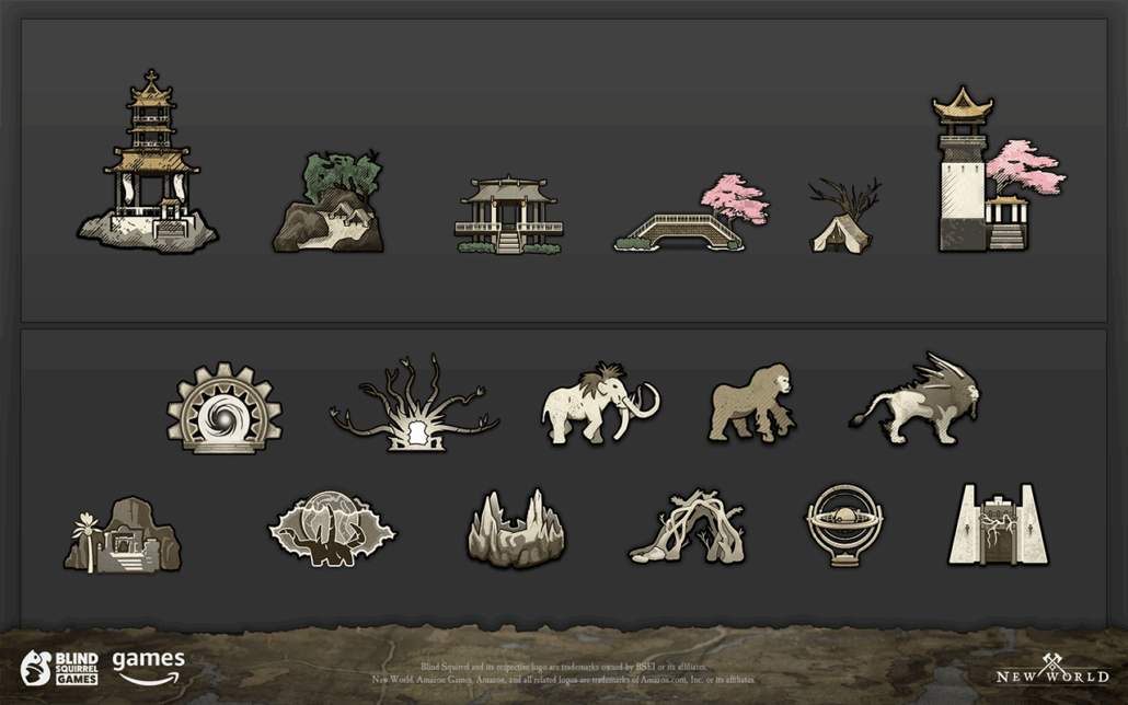 A slew of hand-crafted POI icons for use in the MMO’s map and the compass.